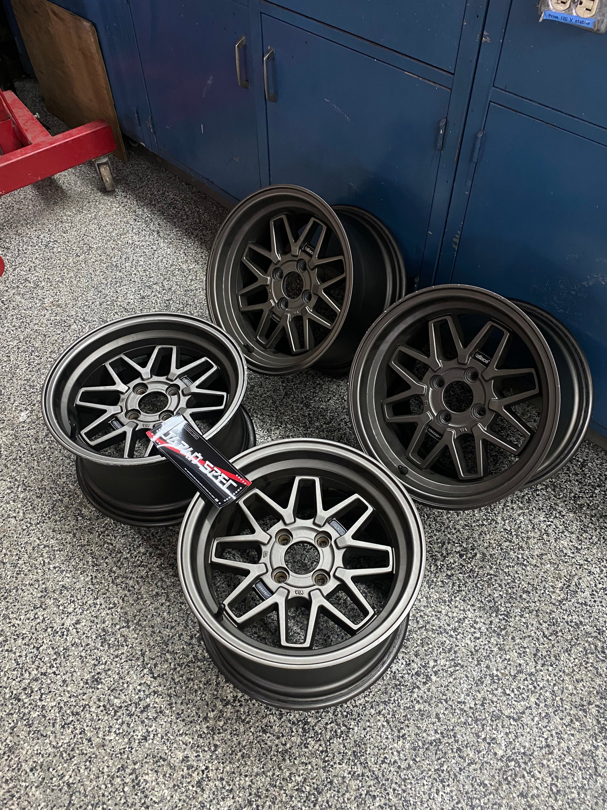 Des spec agressif en 4x100 à petit prix 😱 3 des 4 roues sont vraiment en belle condition, la 4e a une scratch sur une lip qui a juste enlevé la peinture, un set parfait pour rouler tel quel ou les powdercoat comme neuf !